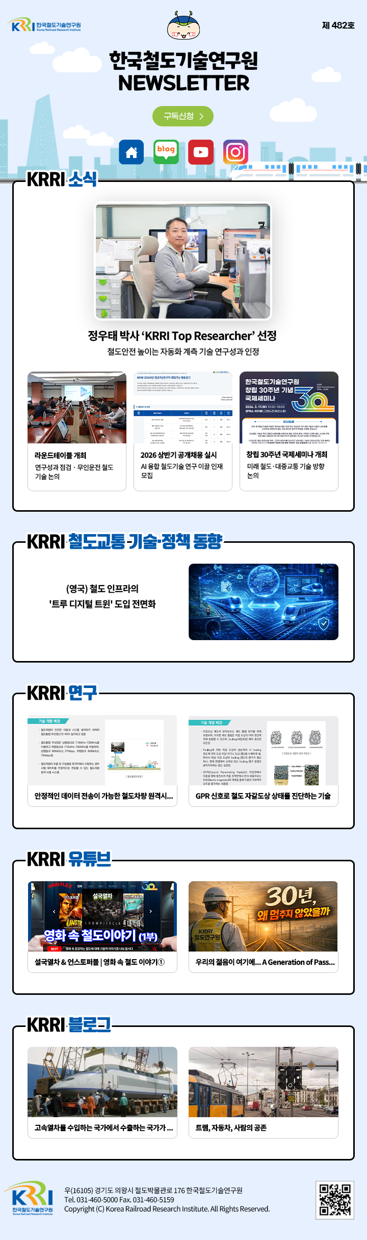 제482호 한국철도기술연구원 소식입니다.