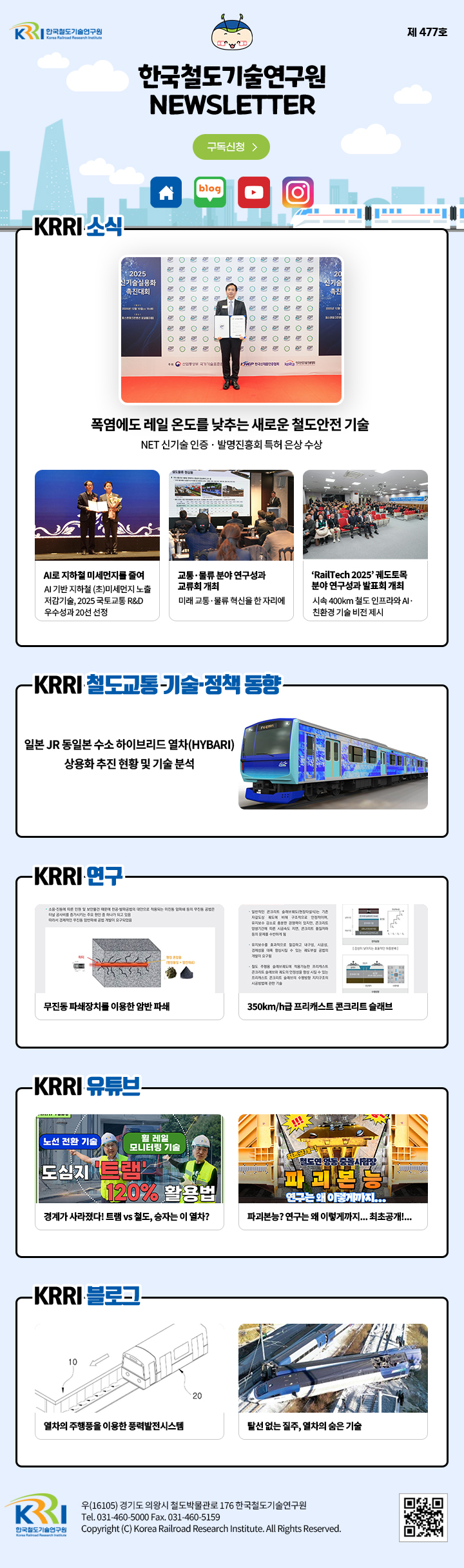 철도기술연구원의 기술개발 연구, 특허 실적을 소개합니다.